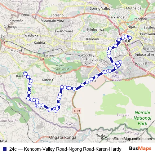Bus 24c - Kencom-Valley Road-Ngong Road-Karen-Hardy: Full Schedule in Nairobi