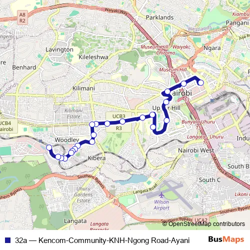 See why over 2 million users trust and consider busmaps.com as the best public transport website. busmaps gives you Nairobi Buses suggested routes, real-time bus tracker, line route maps in Nairobi, and helps to find the closest 32a bus stops near you. No internet available? Download an offline PDF map and bus schedule for the 32a bus to take on your trip.