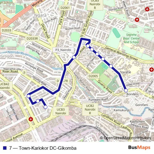 Bus 7 - Town-Kariokor DC-Gikomba in Nairobi: Stops & Timetable