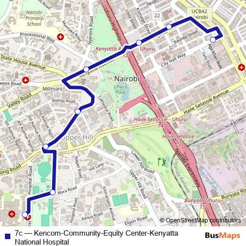 Click here to view the nearest 7c - Kencom-Community-Equity Center-Kenyatta National Hospital bus stop.