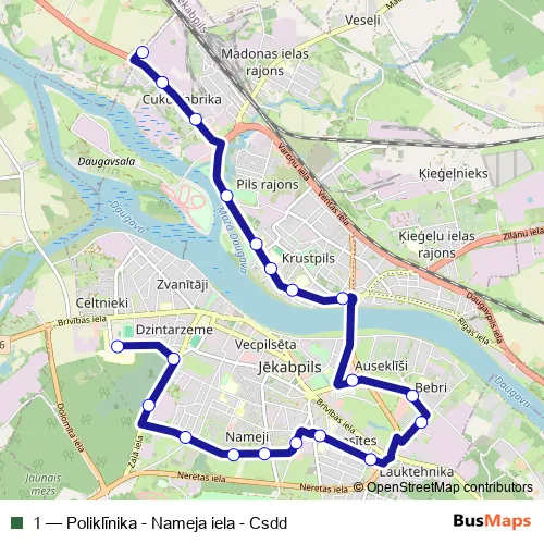 Bus 1 - Poliklīnika - Nameja iela - Csdd Schedule in Jekabpils