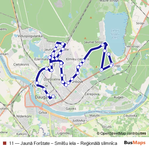 See why over 2 million users trust and consider busmaps.com as the best public transport website. busmaps gives you Daugavpils Buses suggested routes, real-time bus tracker, line route maps in Daugavpils, and helps to find the closest 11 bus stops near you. No internet available? Download an offline PDF map and bus schedule for the 11 bus to take on your trip.