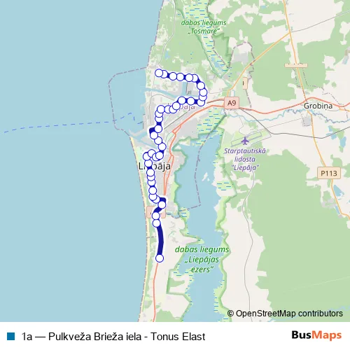 1a (Pulkveža Brieža iela - Tonus Elast) Bus in Liepaja