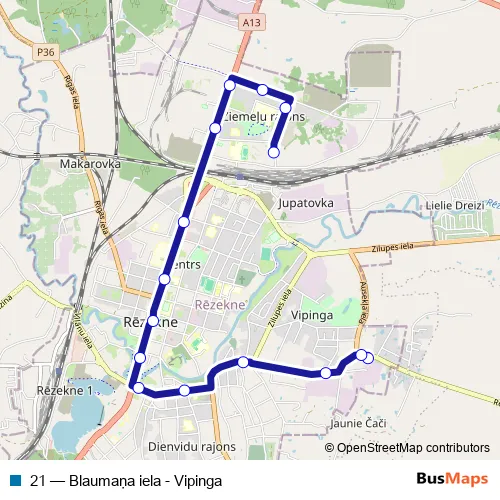 Bus 21 - Blaumaņa iela - Vipinga Schedule in Rezekne