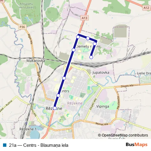 Bus 21a - Centrs - Blaumaņa iela in Rezekne: Stops & Timetable