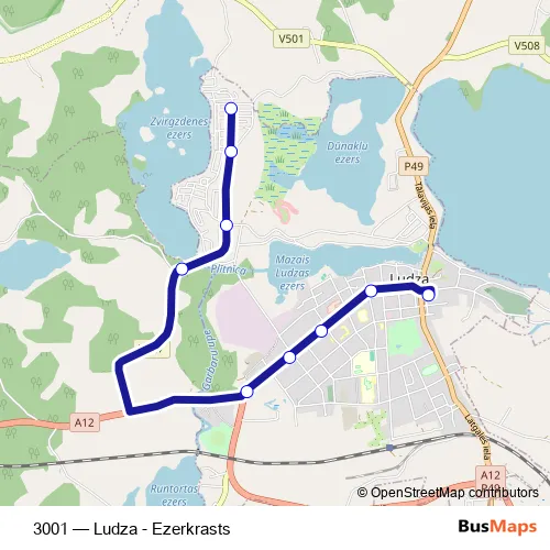 Bus 3001 - Ludza - Ezerkrasts in Ludza: Stops & Timetable