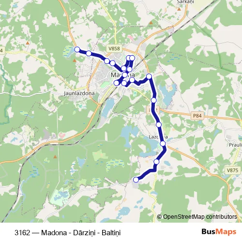 Bus 3162 - Madona - Dārziņi - Baltiņi: Full Schedule in Madona