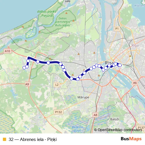 See why over 2 million users trust and consider busmaps.com as the best public transport website. busmaps gives you Riga Buses suggested routes, real-time bus tracker, line route maps in Riga, and helps to find the closest 32 bus stops near you. No internet available? Download an offline PDF map and bus schedule for the 32 bus to take on your trip.
