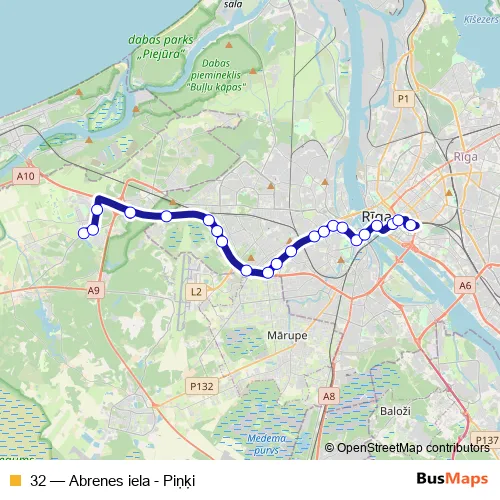 Bus 32 - Abrenes iela - Piņķi: Full Schedule in Riga