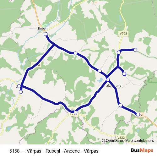 The first stop of the 5158 bus route is Vārpas and the last stop is Vārpas. 5158 (Vārpas - Rubeņi - Ancene - Vārpas) is operational during on weekdays.