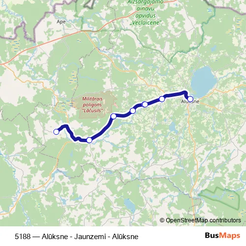 Bus 5188 - Alūksne - Jaunzemi - Alūksne in Aluksne: Stops & Timetable