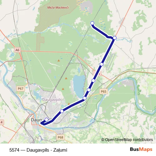 The first stop of the 5574 bus route is Daugavpils Ao and the last stop is Zaļumi. 5574 (Daugavpils - Zaļumi) is operational during everyday.