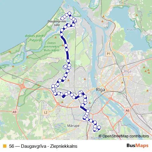 See why over 2 million users trust and consider busmaps.com as the best public transport website. busmaps gives you Riga Buses suggested routes, real-time bus tracker, line route maps in Riga, and helps to find the closest 56 bus stops near you. No internet available? Download an offline PDF map and bus schedule for the 56 bus to take on your trip.