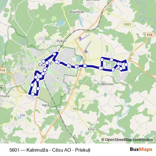 Click here to view the nearest 5601 - Kalnmuiža - Cēsu AO - Priekuļi bus stop.