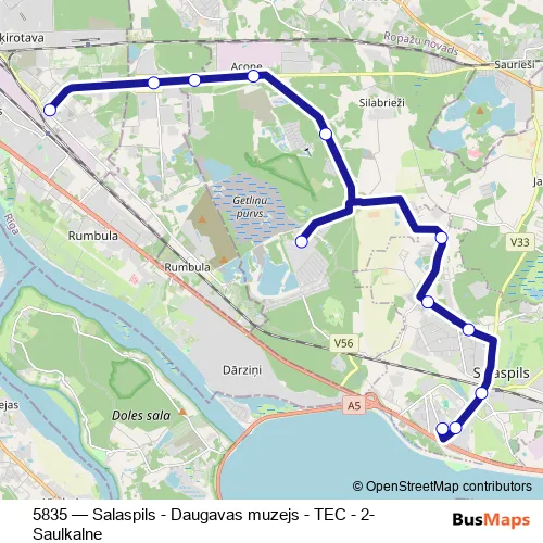 See why over 2 million users trust and consider busmaps.com as the best public transport website. busmaps gives you Salaspils Buses suggested routes, real-time bus tracker, line route maps in Salaspils, and helps to find the closest 5835 bus stops near you. No internet available? Download an offline PDF map and bus schedule for the 5835 bus to take on your trip.