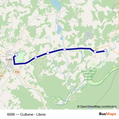 The first stop of the 6006 bus route is Litenes centrs and the last stop is Gulbenes Ao. 6006 (Gulbene - Litene) is operational during on weekdays.