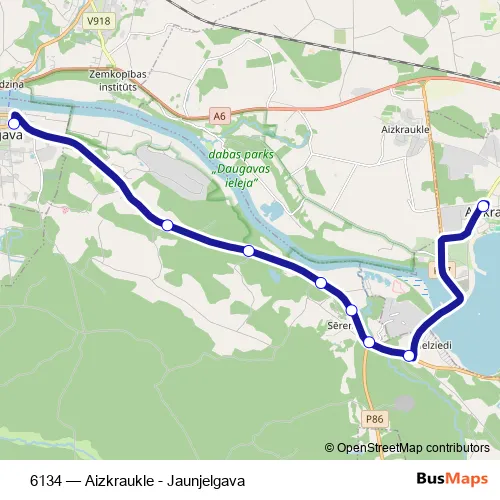 The first stop of the 6134 bus route is Aizkraukles Ao and the last stop is Jaunjelgava. 6134 (Aizkraukle - Jaunjelgava) is operational during everyday.