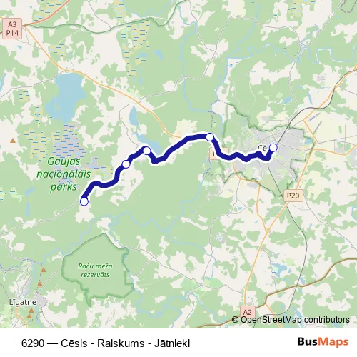 The first stop of the 6290 bus route is Jātnieki and the last stop is Cēsu Ao. 6290 (Cēsis - Raiskums - Jātnieki) is operational during everyday.