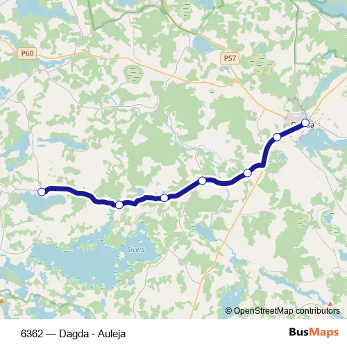 The first stop of the 6362 bus route is Auleja and the last stop is Dagdas Ao. 6362 (Dagda - Auleja) is operational during everyday.