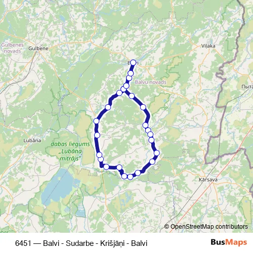 Click here to view the nearest 6451 - Balvi - Sudarbe - Krišjāņi - Balvi bus stop.