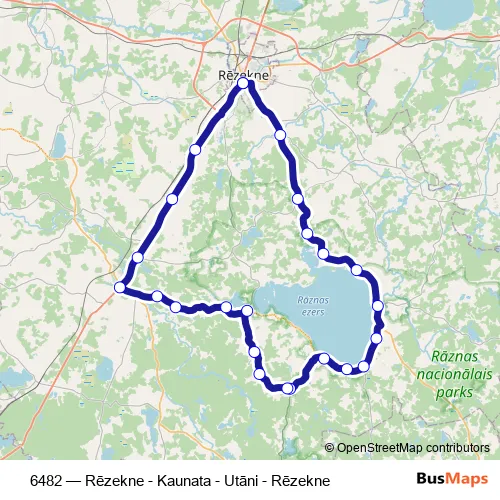 The first stop of the 6482 bus route is Rēzeknes Ao and the last stop is Rēzeknes Ao. 6482 (Rēzekne - Kaunata - Utāni - Rēzekne) is operational during everyday.