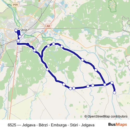 Bus 6525 - Jelgava - Bērzi - Emburga - Stūri - Jelgava: Full Schedule in Jelgava