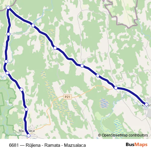 The first stop of the 6681 bus route is Mazsalaca and the last stop is Rūjienas Ao. 6681 (Rūjiena - Ramata - Mazsalaca) is operational during everyday.