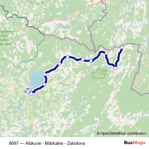 Bus 6697 - Alūksne - Mārkalne - Zabolova in Aluksne: Stops & Timetable