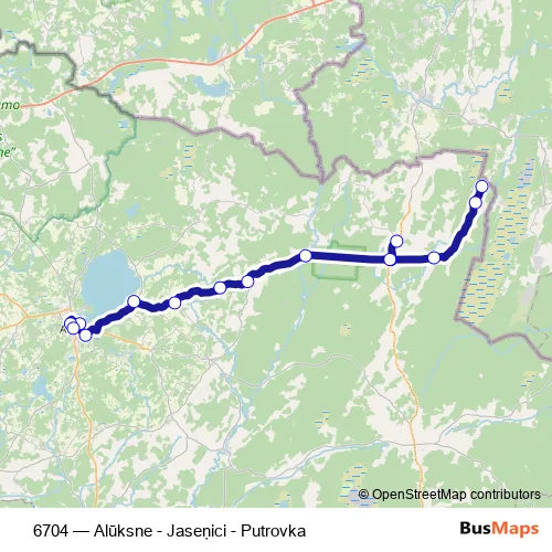 Bus 6704 - Alūksne - Jaseņici - Putrovka in Aluksne: Stops & Timetable