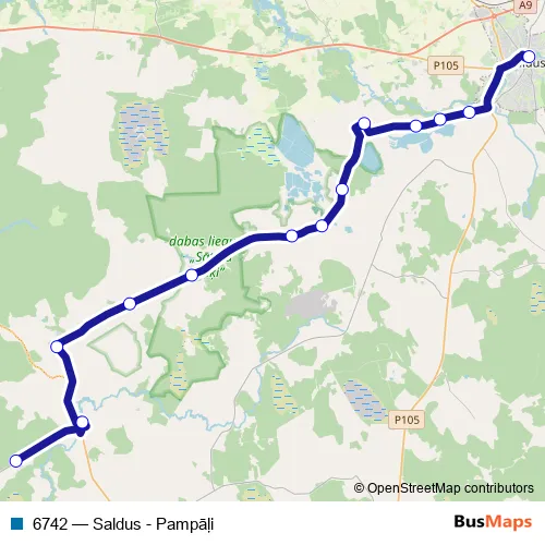 Click here to view the nearest 6742 - Saldus - Pampāļi bus stop.