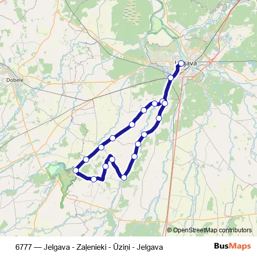 Services on the 6777 - Jelgava - Zaļenieki - Ūziņi - Jelgava bus stop at 18:50 on Monday, Tuesday, Wednesday, Thursday, Friday, Saturday, Sunday.