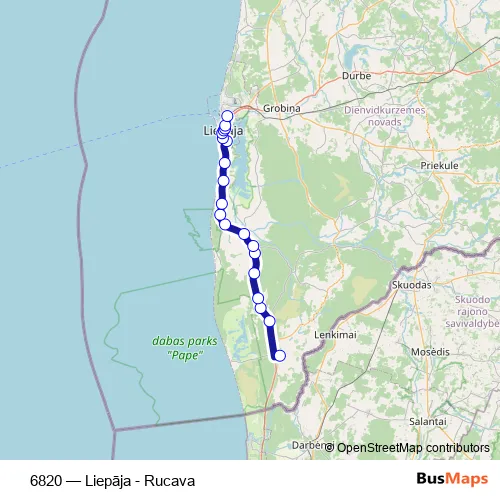 Bus 6820 - Liepāja - Rucava Schedule in Nica