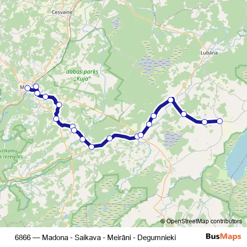 Bus 6866 - Madona - Saikava - Meirāni - Degumnieki in Madona: Stops & Timetable