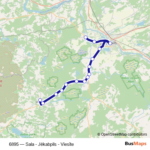 The first stop of the 6895 bus route is Viesīte and the last stop is Sala. 6895 (Sala - Jēkabpils - Viesīte) is operational during on weekdays.