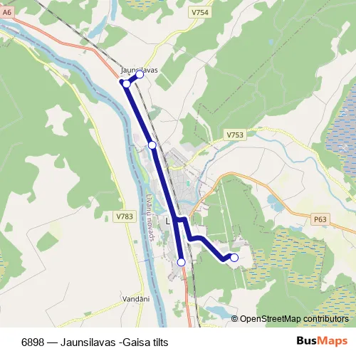 The first stop of the 6898 bus route is Iesalnieki and the last stop is Jaunsilavas. 6898 (Jaunsilavas -Gaisa tilts) is operational during on weekdays.