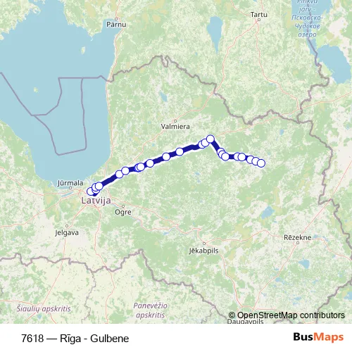 Bus 7618 - Rīga - Gulbene in Gulbene: Stops & Timetable