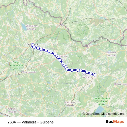 Bus 7634 - Valmiera - Gulbene in Smiltene: Stops & Timetable
