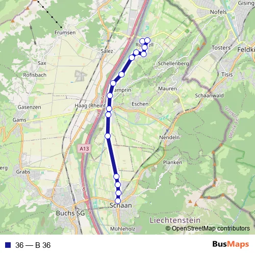 Bus 36 - B 36 in Ruggell: Stops & Timetable