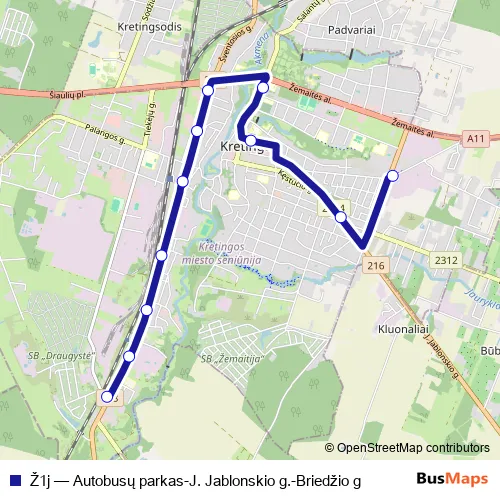 Bus Ž1j - Autobusų parkas-J. Jablonskio g.-Briedžio g: Full Schedule in Kretinga