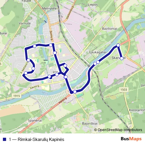 Autobusų stotis. 1 (Rimkai-Skarulių Kapinės) is operational during on weekends.