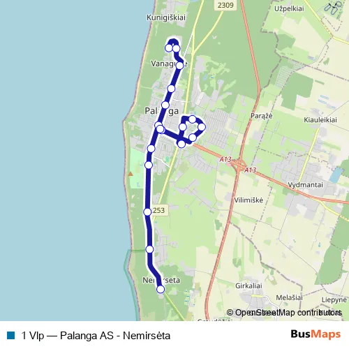 Click here to view the nearest 1 Vlp - Palanga AS - Nemirsėta bus stop.
