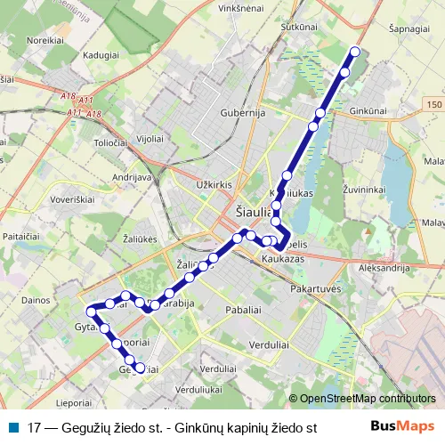 17 (Gegužių žiedo st. - Ginkūnų kapinių žiedo st) Bus in Siauliai