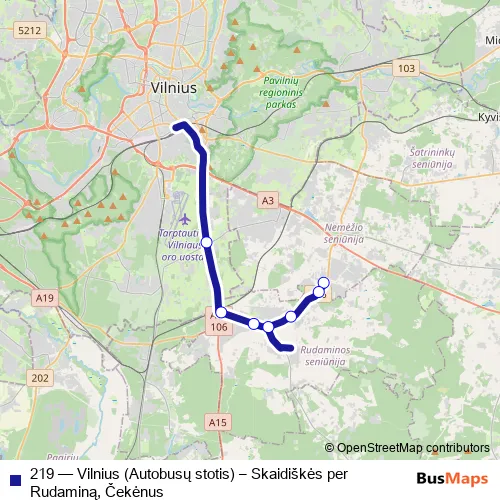 Bus 219 - Vilnius (Autobusų stotis) – Skaidiškės per Rudaminą, Čekėnus in Vilnius: Stops & Timetable