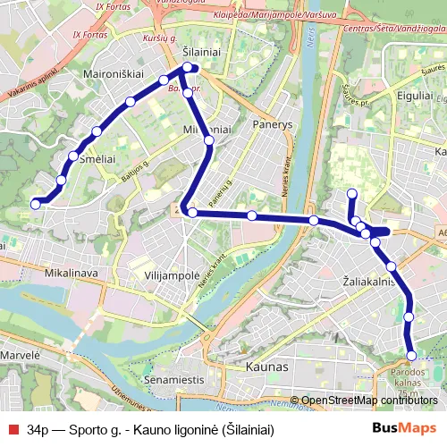 See why over 2 million users trust and consider busmaps.com as the best public transport website. busmaps gives you Kaunas Buses suggested routes, real-time bus tracker, line route maps in Kaunas, and helps to find the closest 34p bus stops near you. No internet available? Download an offline PDF map and bus schedule for the 34p bus to take on your trip.