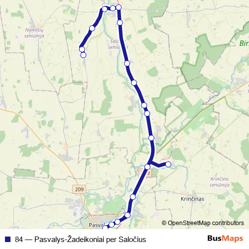 Bus 84 - Pasvalys-Žadeikoniai per Saločius in Pasvalys: Stops & Timetable