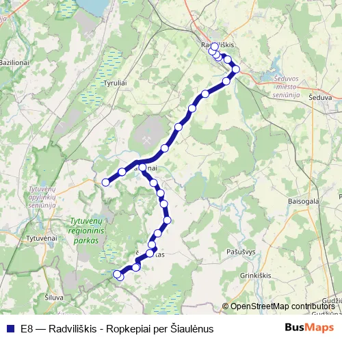 Click here to view the nearest E8 - Radviliškis - Ropkepiai per Šiaulėnus bus stop.