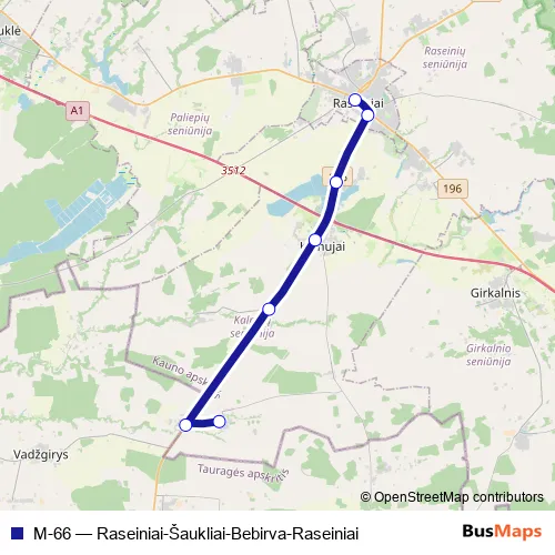Click here to view the nearest M-66 - Raseiniai-Šaukliai-Bebirva-Raseiniai bus stop.