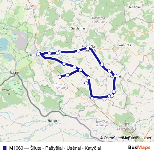 Click here to view the nearest M1060 - Šilutė - Pašyšiai - Usėnai - Katyčiai bus stop.