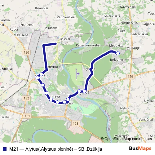 See why over 2 million users trust and consider busmaps.com as the best public transport website. busmaps gives you Alytus Buses suggested routes, real-time bus tracker, line route maps in Alytus, and helps to find the closest M21 bus stops near you. No internet available? Download an offline PDF map and bus schedule for the M21 bus to take on your trip.
