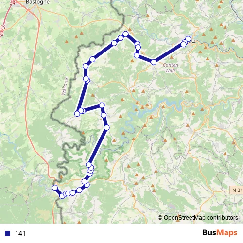 See why over 2 million users trust and consider busmaps.com as the best public transport website. busmaps gives you Wiltz Buses suggested routes, real-time bus tracker, line route maps in Wiltz, and helps to find the closest 141 bus stops near you. No internet available? Download an offline PDF map and bus schedule for the 141 bus to take on your trip.